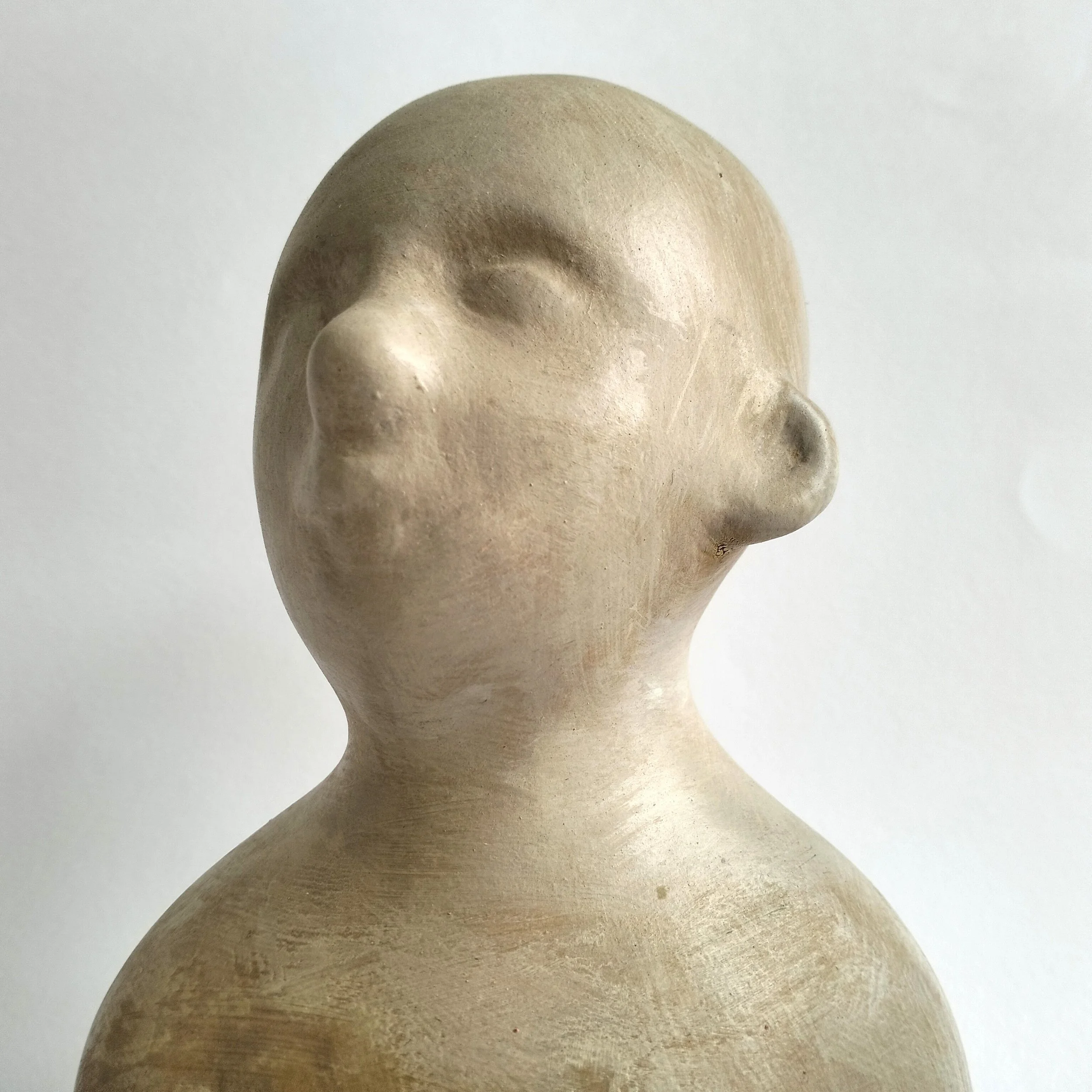 ho voluto rappresentare la dualità: l'identità divisa e la tensione tra l'io reale e la sua proiezione. Il tema sintetizza la dialettica tra autenticità e apparenza, spesso legata a sentimenti di inquietudine e sdoppiamento; è un tema a me caro e che nel mio lavoro tratto molte volte. La poetica concentra l'attenzione sulla complessità dell'animo umano. Le due sculture possono essere posizionate in diversi modi, nel loro interrogarsi sincero. La larghezza dipenderà dal tipo di collocamento.